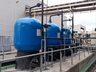 The WWTP is capable of treating 360 m³/day of the clarified mixture of anaerobic digestate and plant leachates using an N-DN biological system in MBR configuration and then a tertiary refining treatment.< br /> The incorporation of UF membranes of the MBR allows a more compact installation compared to conventional treatments in addition to producing a permeate free of suspended matter with a certain disinfectant capacity due to the retention of microorganisms and greater purification performance by increasing the contact time of the substrate with biology and hydrolysis.